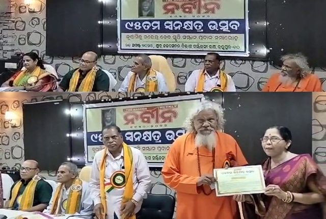 ସ୍ଥାନୀୟ କ୍ଷୁଦ୍ର ଜଳସେଚନ ବିଭାଗ ସମ୍ମିଳନୀ କକ୍ଷରେ ସାପ୍ତାହିକ ‘ନବୀନ’ର 95ତମ ପ୍ରତିଷ୍ଠା ଦିବସ ପାଳନ ଓ କୃପାସିନ୍ଧୁ ନରେନ୍ଦ୍ର ଦେବ ସ୍ମୃତି ସମ୍ମାନ ପ୍ରଦାନ ଉତ୍ସବ ପାଳନ ଅବସରରେ ନବୀନର ସମ୍ପାଦକ ରବି ରଥଙ୍କ ଅଧ୍ୟକ୍ଷତାରେ ଅନୁଷ୍ଠିତ କାର୍ଯ୍ୟକ୍ରମରେ ମୁଖ୍ୟବକ୍ତା ଭାବେ ଭାଗବତ ଭାସ୍କର ତଥା ପ୍ରବଚକ ପଣ୍ଡିତ ଜଗନ୍ନାଥ ପଣ୍ଡା ଯୋଗଦେଇ ନବୀନର ଉତ୍ତୋରତ୍ତର ଶ୍ରୀବୃଦ୍ଧି କାମନା କରିବା ସହ ‘ନବୀନ’ର ଶତାୟୁ ହେଉ ବୋଲି ଆଶୀର୍ବଚନ ଦେଇଥିଲେ। ଏହି ଅବସରରେ ମୁଖ୍ୟଅତିଥିଙ୍କ ଦ୍ଵାରା ଭାରତ ବର୍ଷର ବିଶିଷ୍ଟ ସମାଜସେବୀ ତଥା ଅଗ୍ରଣୀ ସ୍ଵେଚ୍ଛାସେବୀ ସଂଗଠନ ‘ପ୍ରେମ୍‌‍’ର ସଭାପତି ଡ଼. ଜାକୋବ୍‌‍ ଥୁଣ୍ଡିଲ ଓ ବିଶିଷ୍ଟ ସମାଜସେବୀ ତଥା ଅଗସ୍ତିନୂଆଗାଁସ୍ଥିତ ଚିଦାନନ୍ଦ ଦିବ୍ୟଧାମର ପ୍ରତିଷ୍ଠାତା ସଭାପତି ବିପ୍ର ଚରଣ ପାତ୍ରଙ୍କୁ ମାନପତ୍ର, ଉତ୍ତରୀୟ ଓ ପୁଷ୍ପଗୁଚ୍ଛ ପ୍ରଦାନ ପୂର୍ବକ କୃପାସିନ୍ଧୁ ନରେନ୍ଦ୍ର ଦେବ ସମ୍ମାନରେ ସମ୍ମାନିତ କରାଯାଇଥିଲା। ଡ଼. ଥୁଣ୍ଡିଲ ଓ ଶ୍ରୀ ପାତ୍ର ସମ୍ୱର୍ଦ୍ଧନାର ଉତ୍ତରରେ ନବୀନର ଏଭଳି ଉଚ୍ଛ୍ୱସିତ ସମ୍ୱର୍ଦ୍ଧନା ପାଇ ଆନନ୍ଦ ପ୍ରକାଶ କରିବା ସହ ଅନୁଷ୍ଠାନ ପ୍ରତି କୃତଜ୍ଞତା ଜଣାଇଥିଲେ।