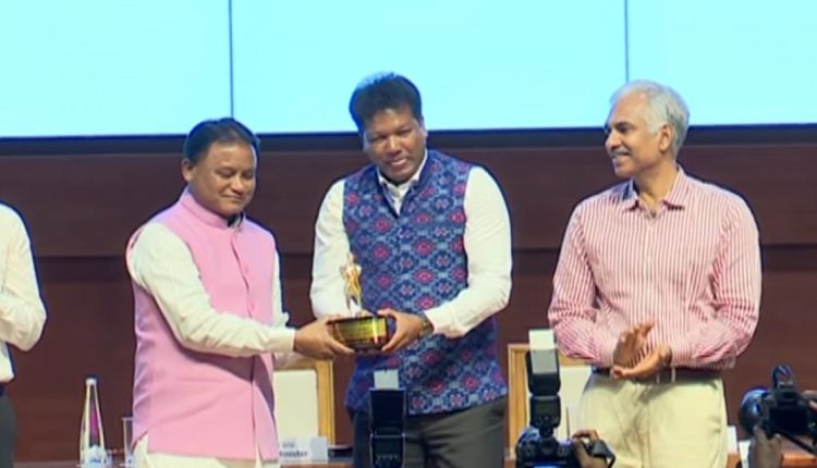 ୫- ମୁଖ୍ୟମନ୍ତ୍ରୀଙ୍କଠାରୁ ପୁରସ୍କାର ଗ୍ରହଣ କରୁଛନ୍ତି ସୁକେଶ ରଞ୍ଜନ ବେହେରା ।