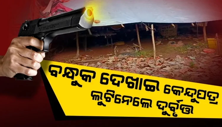 ଦଶପଲ୍ଲା ବନାଞ୍ଚଳ ସାକେଣୀ କେନ୍ଦୁପତ୍ର ଫଡ଼ିରେ ବଡ଼ ଧରଣର ଡକାୟତି ହୋଇଛି। ବନ୍ଧୁକ ଦେଖାଇ ମୁଖା ପିନ୍ଧା ୧୦ଜଣ ଯୁବକ ଲୁଟିନେଇଛନ୍ତି ବସ୍ତା ବସ୍ତା କେନ୍ଦୁପତ୍ର।
