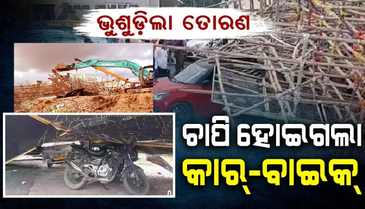 ଦୁର୍ଗାପୂଜା ପାଇଁ ନିର୍ମିତ ତୋରଣ ଭୁଶୁଡ଼ିଲା
