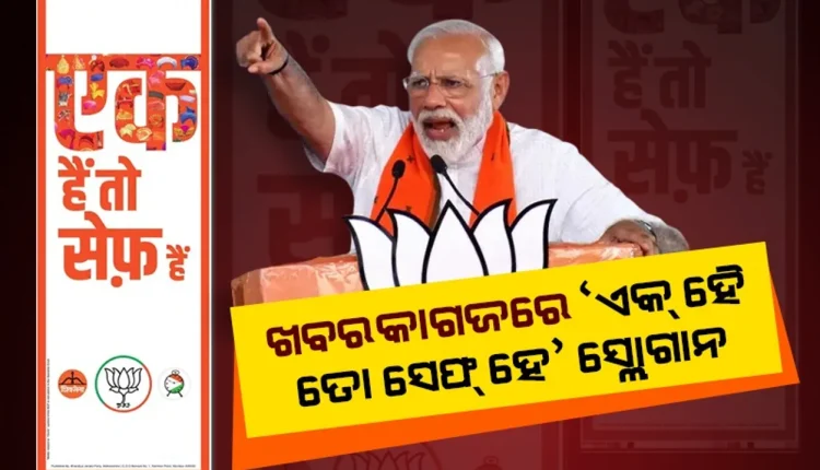 ବିଭିନ୍ନ ଖବରକାଗଜରେ ମୋଦୀଙ୍କ ‘ଏକ୍‌ ହେ ତୋ ସେଫ୍‌ ହେ’ ସ୍ଲୋଗାନ