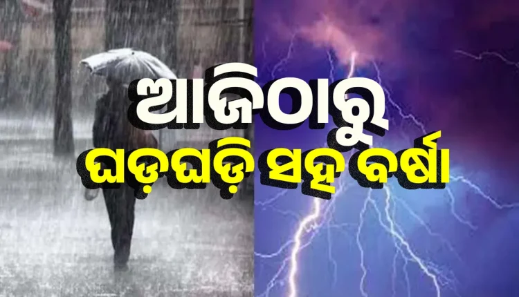 ଆଜିଠାରୁ ରାଜ୍ୟରେ ଘଡ଼ଘଡ଼ି ସହ ବର୍ଷା: ପାଣିପାଗ ବିଭାଗ ପକ୍ଷରୁ ସତର୍କ ସୂଚନା ଜାରି