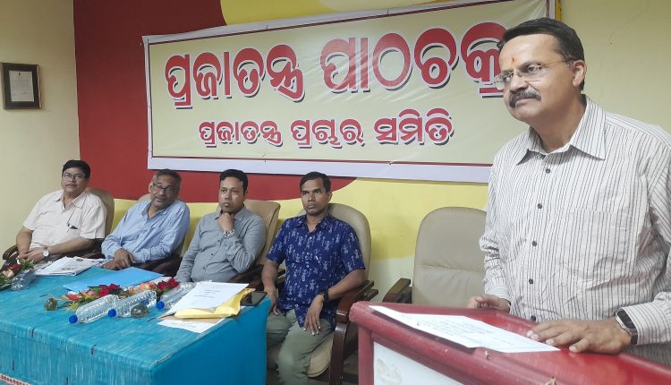 ଓଡିଶାକଟକ ସାଂସଦଙ୍କ ବିଭିନ୍ନ କାର୍ଯ୍ୟକ୍ରମଜାତୀୟ ପ୍ରଜାତନ୍ତ୍ର ପାଠଚକ୍ର By Prajatantra Voice Last updated Feb 22, 2025 0 ପ୍ରଜାତନ୍ତ୍ର ପାଠଚକ୍ରରେ ଉଦ୍ବୋଧନ ଦେଉଛନ୍ତି ପ୍ରଜାତନ୍ତ୍ର ପ୍ରଚାର ସମିତିର ଅଧକ୍ଷ ଭର୍ତ୍ତୃହରି ମହତାବ 0 Share