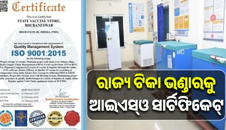 ରାଜ୍ୟ ଟିକା ଭଣ୍ଡାରକୁ ଆଇଏସ୍ଓ ସାର୍ଟିଫିକେଟ୍