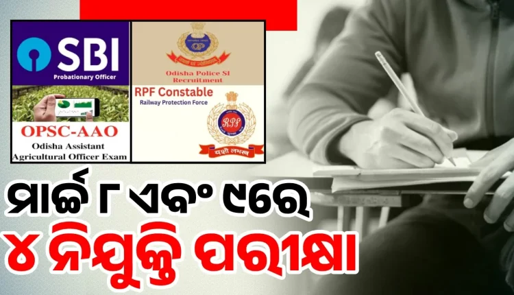 ଦୁଇ ଦିନରେ ୪ ଭିନ୍ନ ଭିନ୍ନ ନିଯୁକ୍ତି ପରୀକ୍ଷାକୁ ନେଇ ଓଡ଼ିଶାରେ ଆଶାୟୀମାନଙ୍କ ମଧ୍ୟରେ ହତାଶ ବୃଦ୍ଧି ପାଇଛି। କାରଣ ଗୁରୁତ୍ୱପୂର୍ଣ୍ଣ ନିଯୁକ୍ତି ପରୀକ୍ଷା ମାର୍ଚ୍ଚ ୮ ଏବଂ ମାର୍ଚ୍ଚ ୯ ଦୁଇଦିନରେ ପଡୁଛି