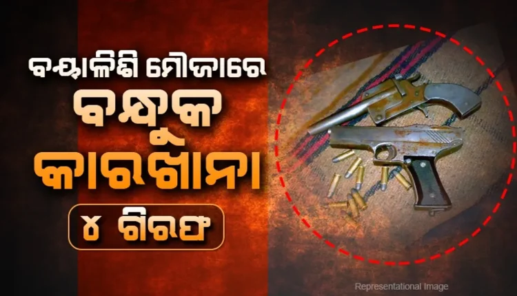 କଟକ ବୟାଳିଶି ମୌଜାରେ ବେଆଇନ ବନ୍ଧୁକ କାରଖାନା ଠାବ: ବନ୍ଧା ହେଲେ ୪ ଅଭିଯୁକ୍ତ